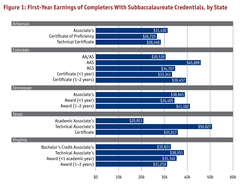 The study looked at first-year earnings of graduates in Arkansas, Colorado, Tennessee, Texas and Virginia, which have put that information online.