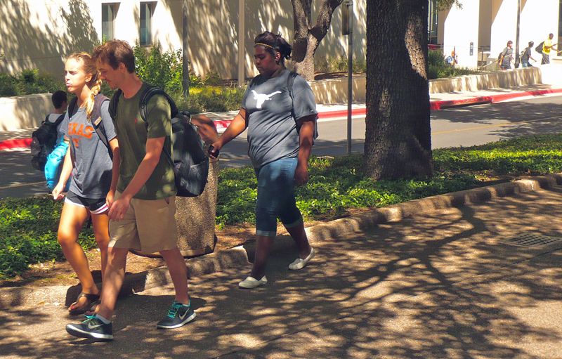Minority students at the University of Texas-Austin have higher graduation rates than at less-selective institutions, but the rates are still lower than for white students. (photo by Sarah Garland)